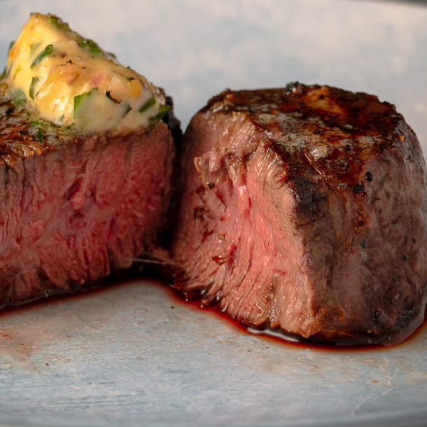 250 gr. with sauce Café de Paris wrapped in Bacon, mixed salad